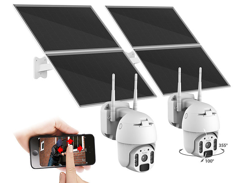 - Kameras im günstigen Doppel-Pack mit vollkommen kabelfreiem Betrieb: dank Akku mit Solarladung
